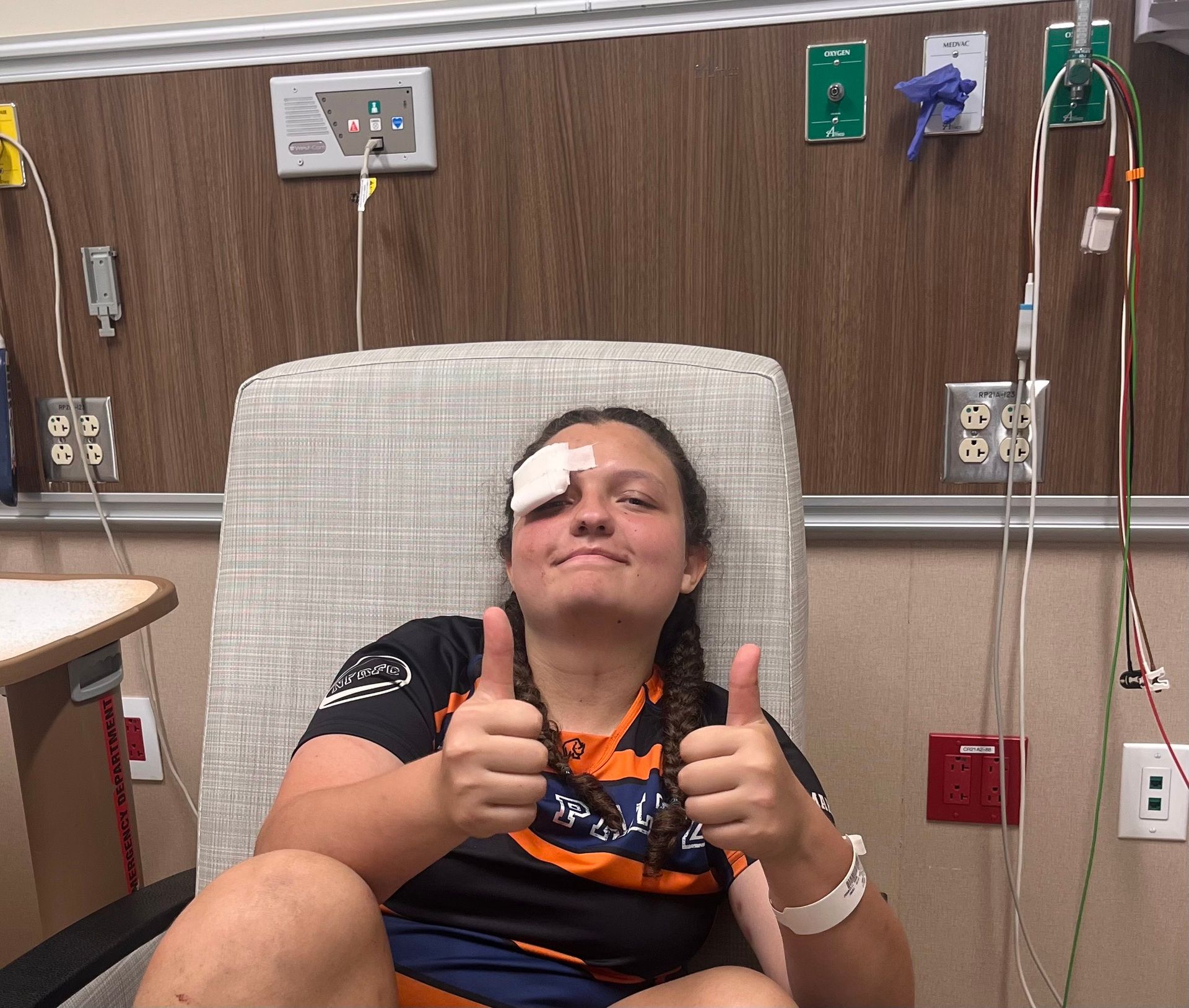 Noelle Boruta was sent off after a head clash and walked away with 7 stitches above her eye, proof of the team’s physical commitment.